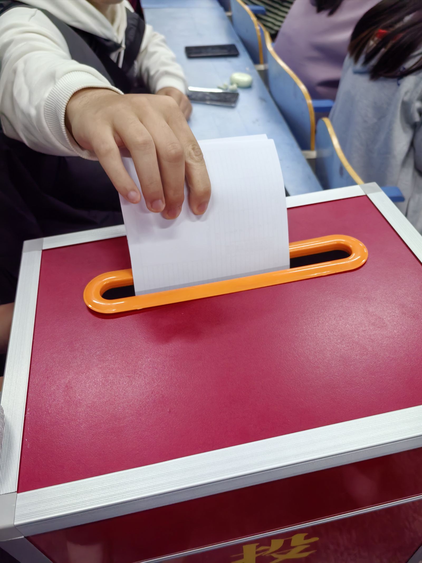 随即在场的120位学生代表为四位候选人以及35位校学代会代表候选人进行了投票,选出了3位文学院学生会主席团成员和18位校学生代表候选人,这18位中包含7位学生组织成员和11位非组织成员。