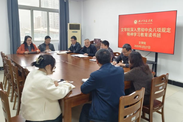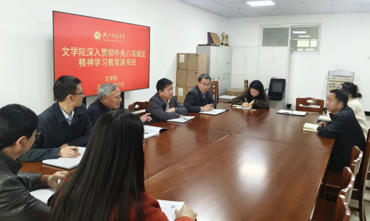 按照深入贯彻中央八项规定精神学习教育工作安排,坚持“思想引领、学习在先”要求,文学院于3月27日下午在崇文楼B905举办专题读书班。学院院班子成员、各党支部书记、三办主任参加会议。会议由学院分党委书记曹弋主持。
