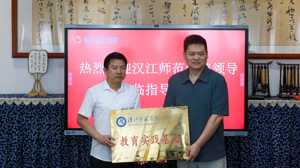 活动现场,文学院与鹿鸣书院签署“校校合作”协同育人协议书。根据协议书内容,双方将在学生实习实训、课程开发、师资互聘、合作就业等方面开展系列合作。签约完成后,郝文华院长向鹿鸣书院授予“汉江师范学院教育实践基地”牌匾。