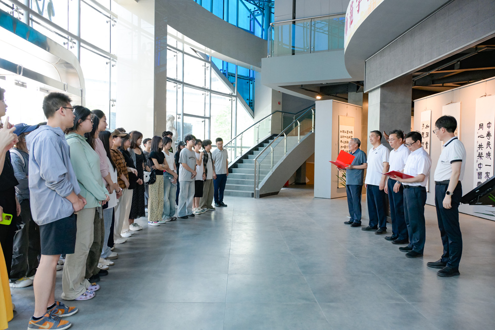 王进在开幕式上指出,一是要以纪念中国人民抗日战争暨世界反法西斯战争胜利80周年为契机,通过书法艺术铭记历史,弘扬中华儿女团结抗战的伟大精神;二是强调中华民族共同体意识的重要性,呼吁推动各民族文化的传承与交融,以书法为纽带增强文化自信,构筑共有精神家园;三是通过艺术展览深化民族团结,引导青年大学生树立正确的国家观和民族观,号召大家像石榴籽一样紧密团结,凝聚力量,共同迈向中华民族伟大复兴的未来。