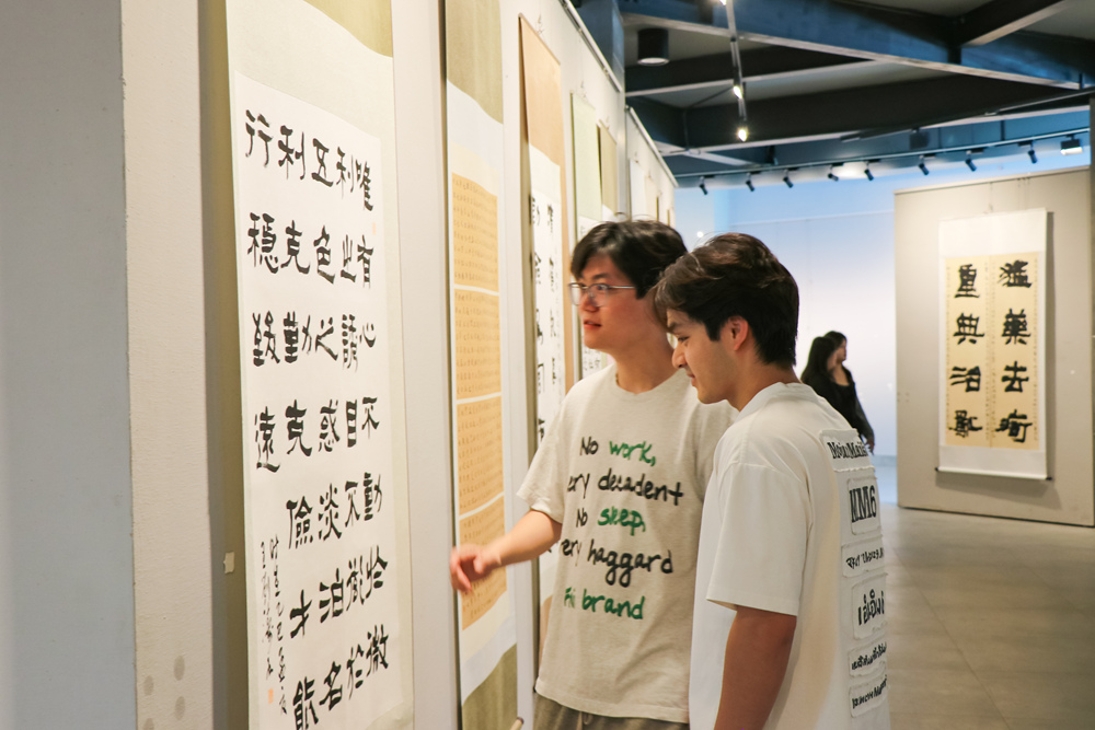 展览现场,师生们驻足观赏,细细品味每一幅作品的笔墨韵味和思想内涵,不时发出赞叹之声。大家表示,通过这次书法展,更加深刻地感受到了中华优秀传统文化的博大精深和民族团结的强大力量,在今后的学习和生活中,将自觉做铸牢中华民族共同体意识的倡导者、践行者和传播者。
