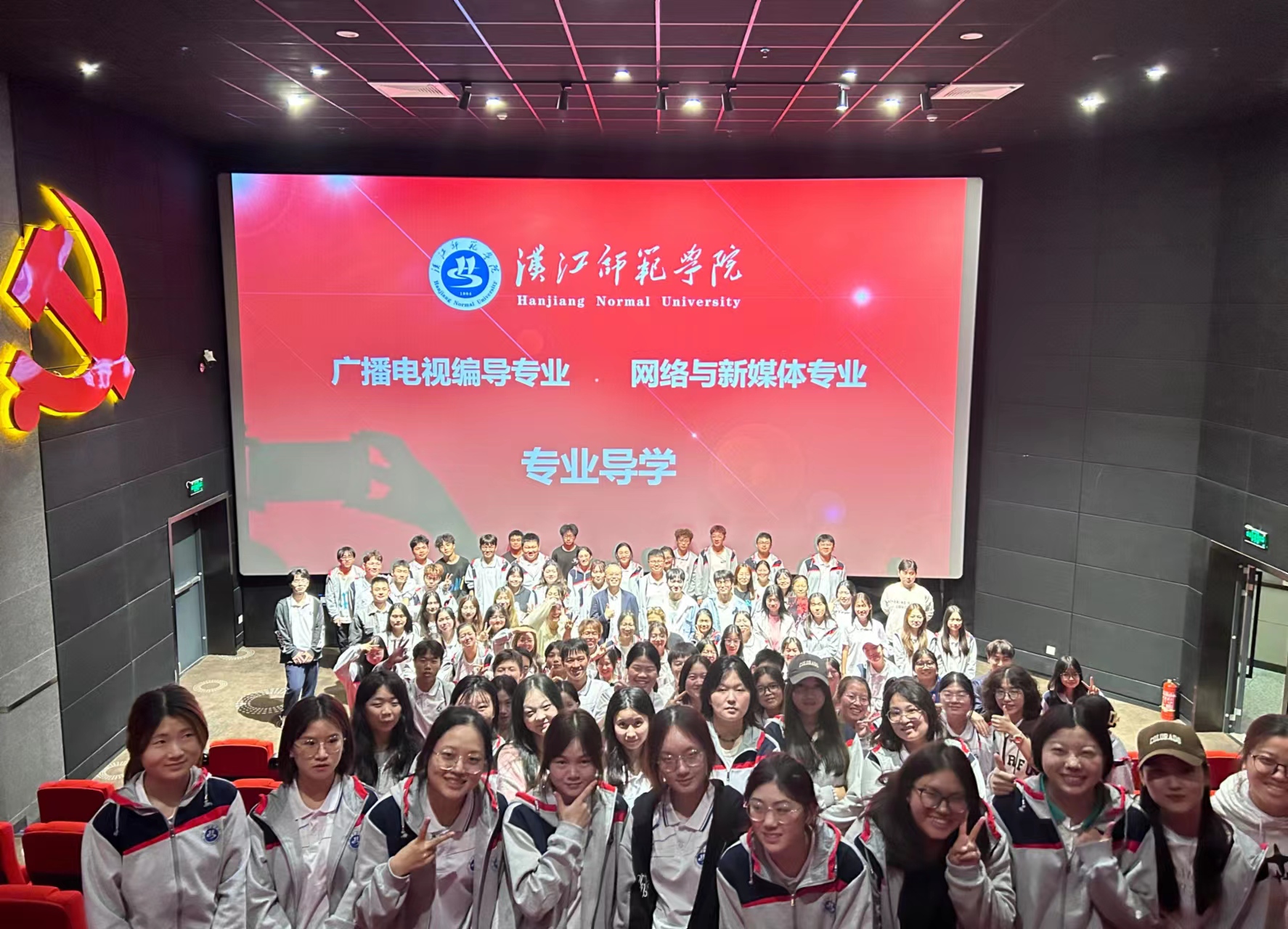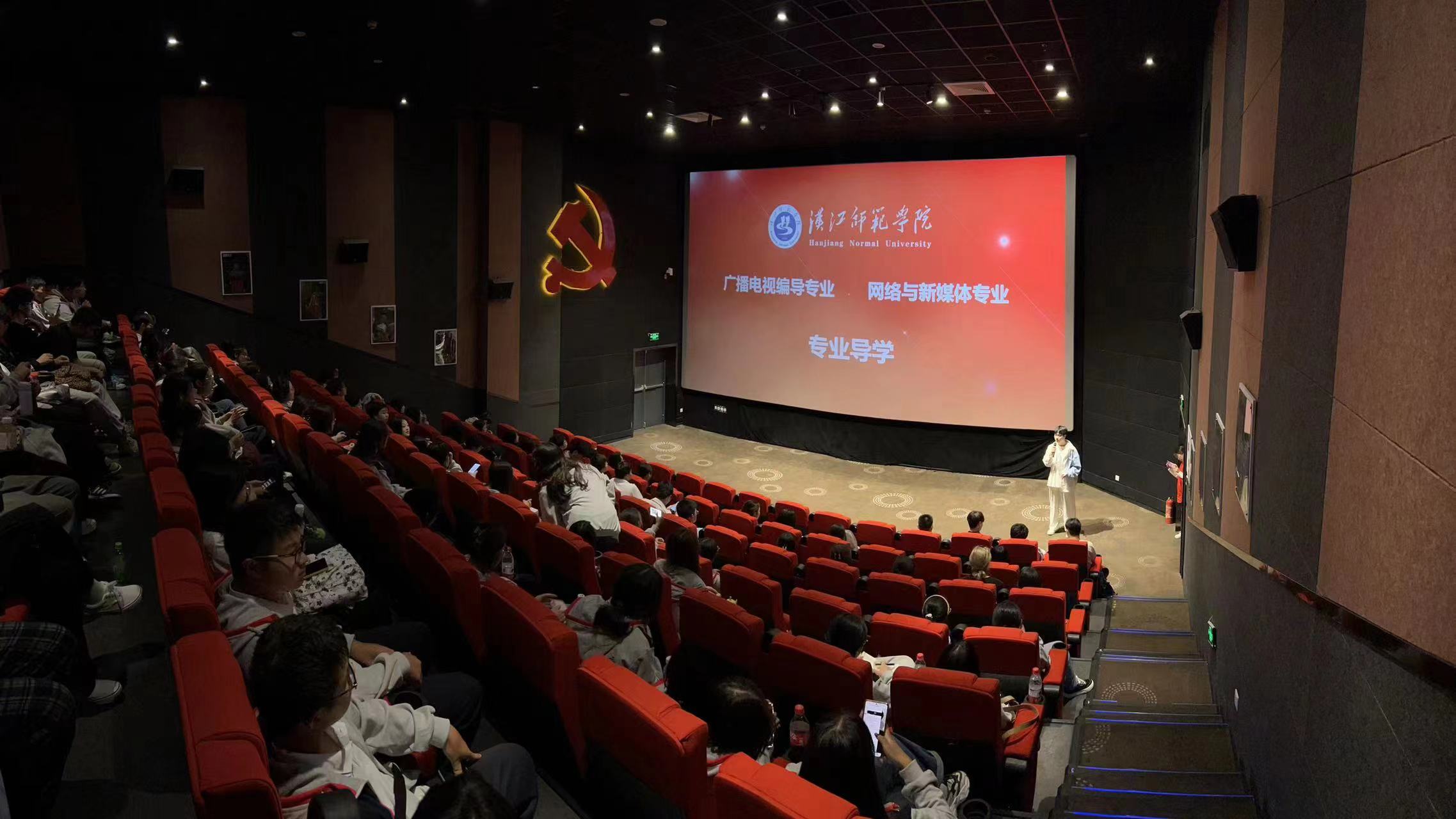 2023年9月26日下午,文学院广播电视编导和网络与新媒体专业的专业导学课程在实习基地茅箭区“四史”教育影城开启第一课。新闻传播教研室全体教师和两个专业95名新生参加了本次活动。