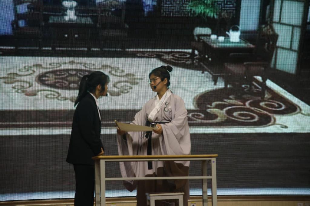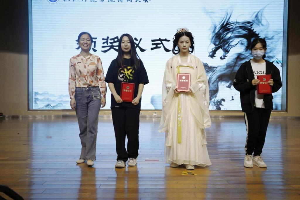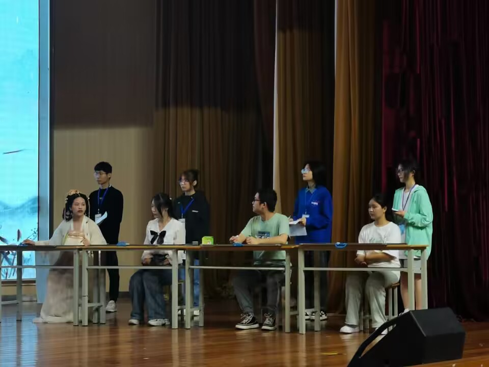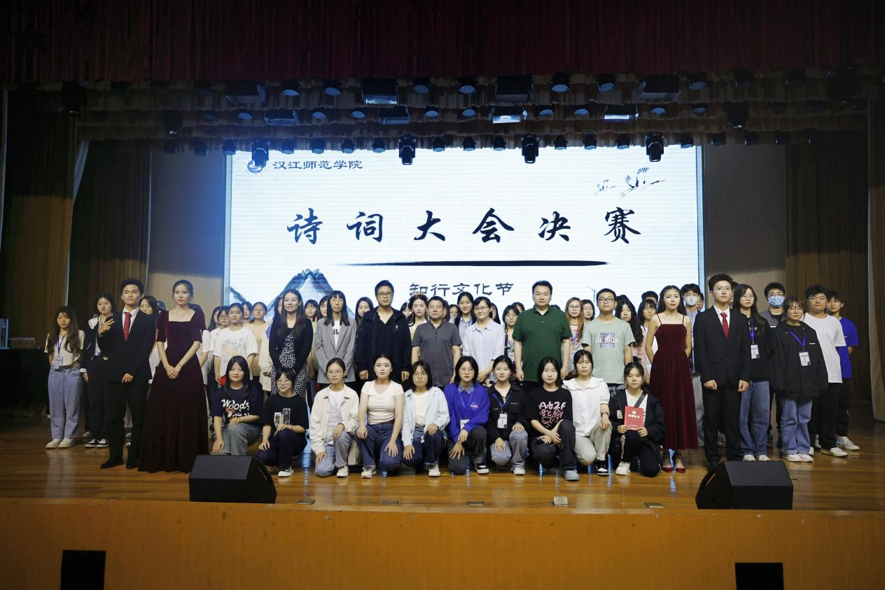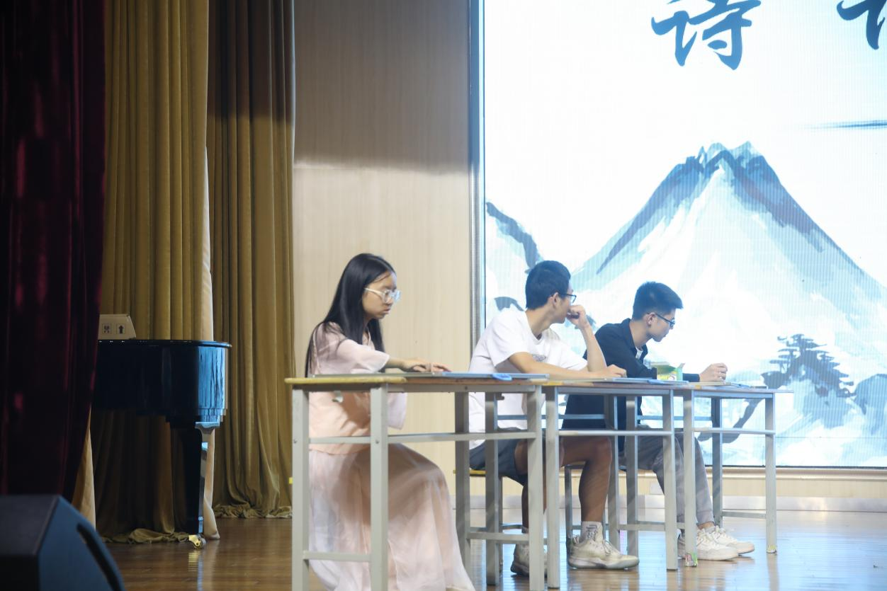 6月17日晚,由学生工作处、校团委、文学院、图书馆主办,“崇文”优秀传统文化教育工作室承办,柳溪诗社、读书协会联合协办的2023年汉江师范学院诗词大会决赛在南风剧场顺利收官。大会邀请了校学生工作部部长刘飞老师、文学院院长郝文华老师、历史文化与旅游学院党总支书记任自玲老师、文学院学工办主任彭涛老师、外国语学院学工办主任罗晓忆老师、文学院学生支部书记柳宇老师、文学院分团委负责人郑胜男老师作为评委。各学院部分学生观看比赛。