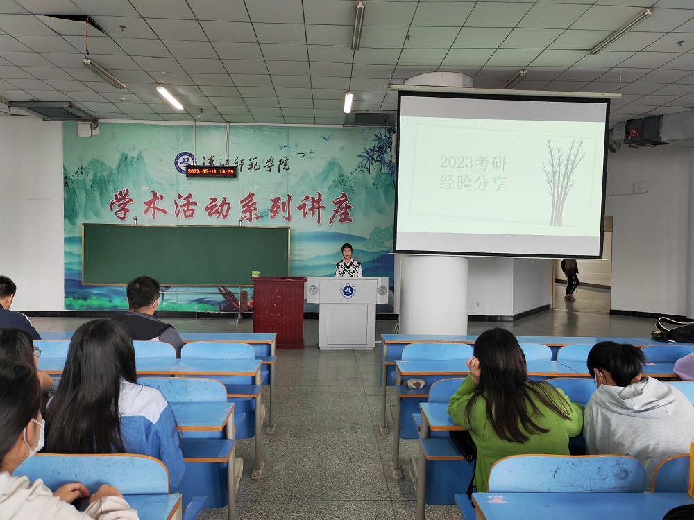 随后,两名2023届考研成功的学生分别从院校选择、计划安排、资料准备、备考方法等方面展开了详细的总结分享。其中,考入湖北大学的黎雨菲同学提醒同学们要清楚认识到考研竞争日趋激烈,面对考研要早做准备。考入大连海洋大学的王帆同学,认为在考研的道路上一定要信念坚定,精力集中,提高自己的学习效率。