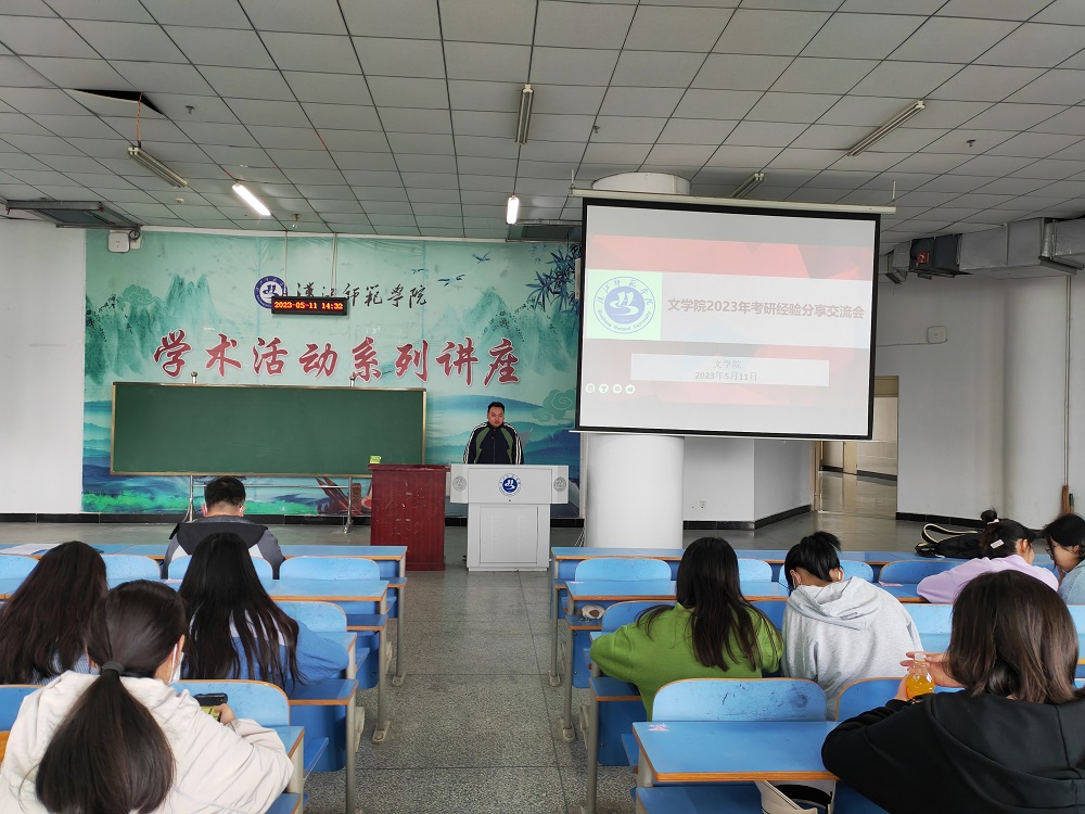 5月11日下午,文学院在明理楼C201举行2023年考研经验交流会暨2024年考研动员会。文学院学工办主任彭涛,辅导员柳宇、蔡兆祝,教师章文婧以及学院2024届本科生参加了此次大会,会议由柳宇老师主持。