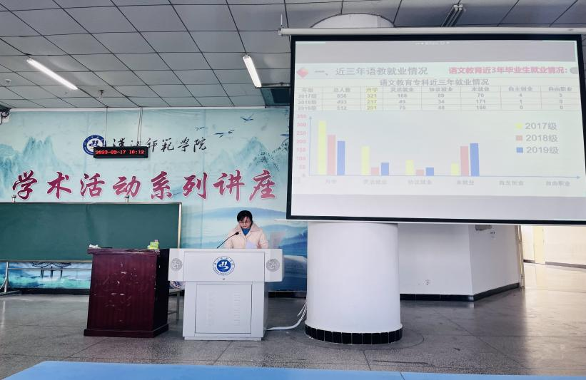 本次会议由彭涛主任主持,党总支副书记任自玲重点做就业动员讲话。任书记向语文教育专业的同学们介绍了近三年该专业毕业生的就业情况,包括专升本的院校选择分析。紧接着,任书记具体为同学们分析了今年的大学生就业形势,通过一系列官方数据,列举了今年大学生就业的不利和有利因素,为毕业生就业方向提供了一些思路与建议。要求大家认清当前形势,精准自我定位,多途径做好就业选择。在积极准备2023年专升本考试的同时,也要关注相关的就业信息,做到两手抓。