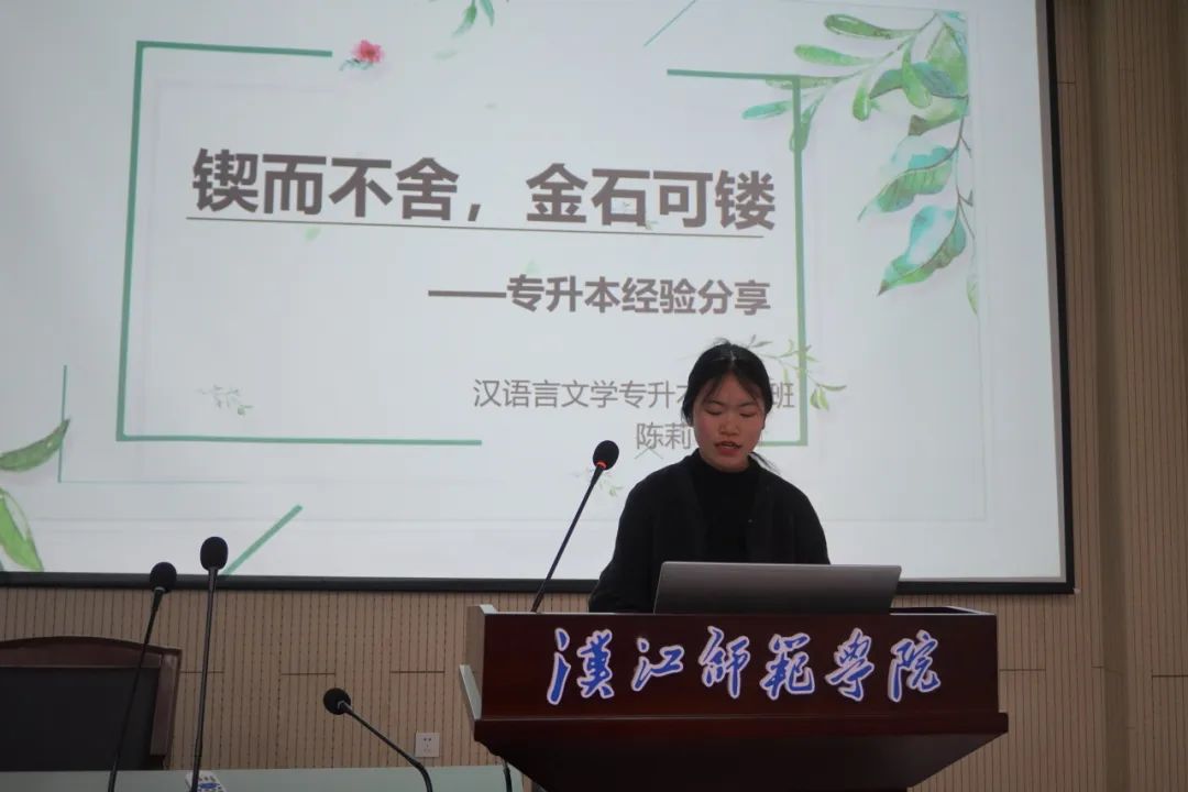会上,辅导员郑弘洁详细解读了近三年小学语文教育专业专升本及就业情况,辅导员杨超就征兵入伍相关政策进行了宣讲,专升本优秀学生代表陈莉分享了专升本备考经验,退伍大学生代表陈柒用自己的参军经历,激励同学们参军入伍,报效祖国。辅导员魏东、郑胜男、章文婧老师现场为同学们进行了答疑。