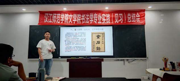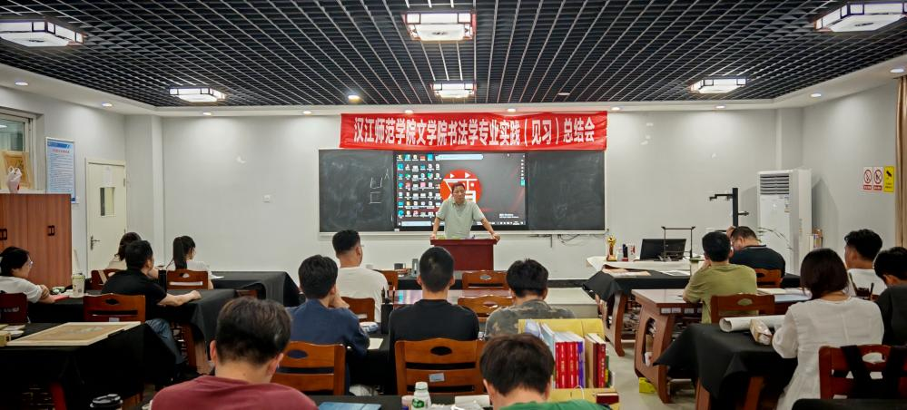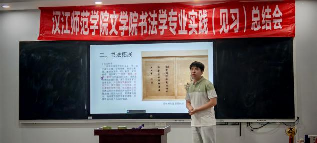 6月13日晚7点半,汉江师范学院文学院书法学专业21级研学考察总结大会在崇文楼B505举行。书法教研室全体教师参加,大会由书法教研室主任黄振东老师主持。