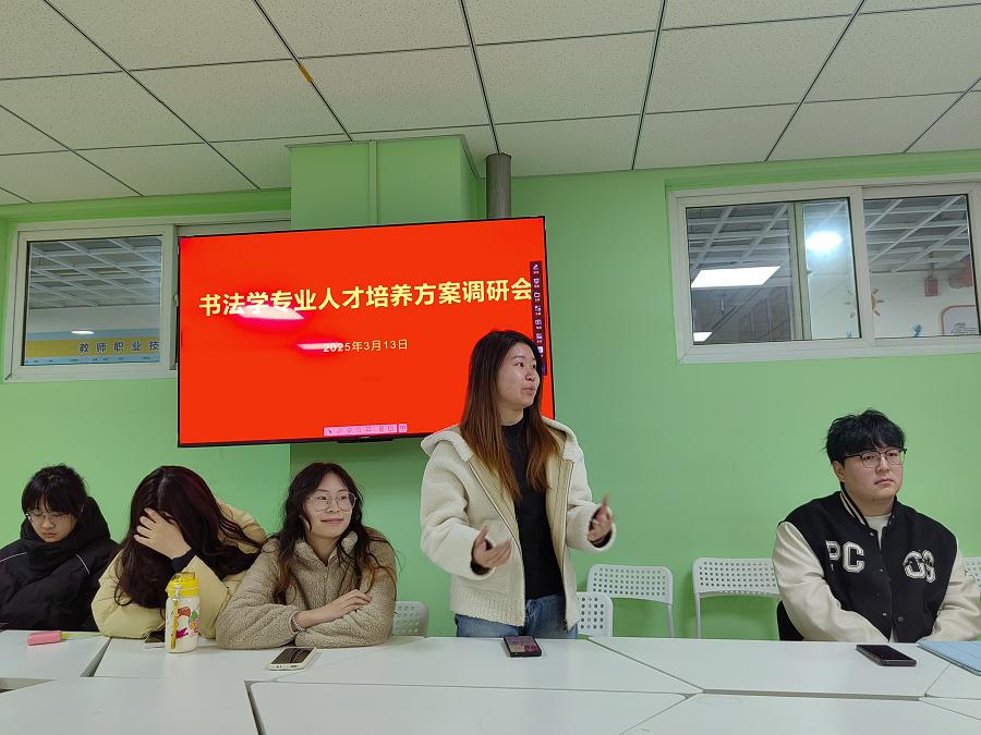 为深化教育教学改革,提升书法学专业人才培养质量,3月13日晚,文学院书法教研室在文科楼b705组织召开了"书法学专业人才培养方案调研会"。该院书法学专业学生代表及全体书法学教师30余人齐聚一堂,围绕人才培养方案优化展开深入交流。