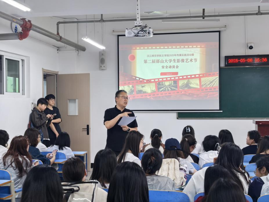 为强化实践教学安全管理,保障基层采风创作顺利开展,文学院于2025年5月8日在崇文楼714召开2025年传媒实践活动暨第二届郧山大学生影像艺术节。新闻传播教研室全体教师及广播电视编导、网络与新媒体22级、23级全体学生共同参加,会议由新闻教研室主任戴文雄老师主持。