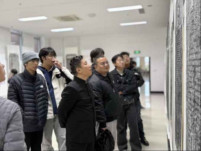 2025年10月20日,文学院书法学专业25级师生走进湖北汽车工业学院逸夫图书馆,沉浸式参观“武当碑刻拓片艺术特展”,在金石墨香中开启一场跨越千年的书法文化研学之旅。