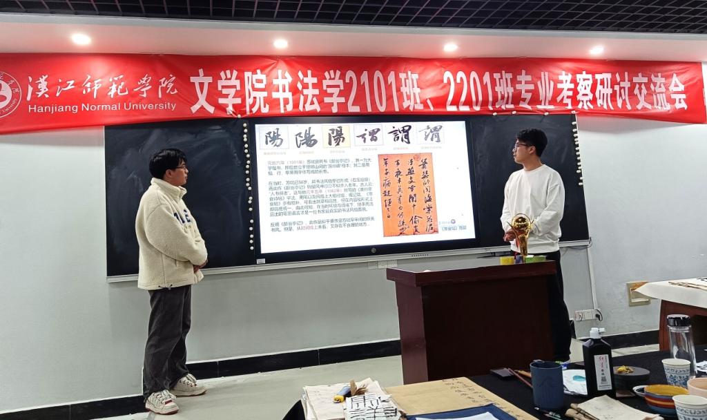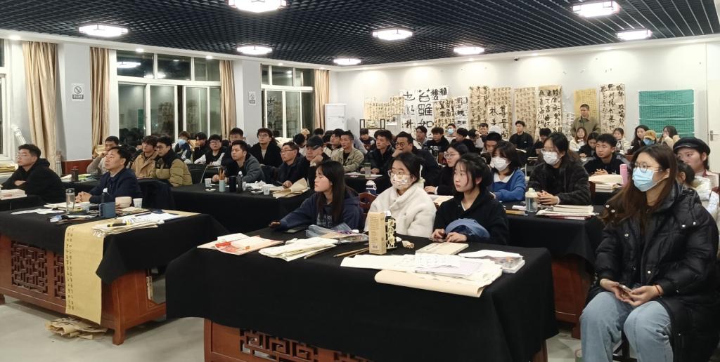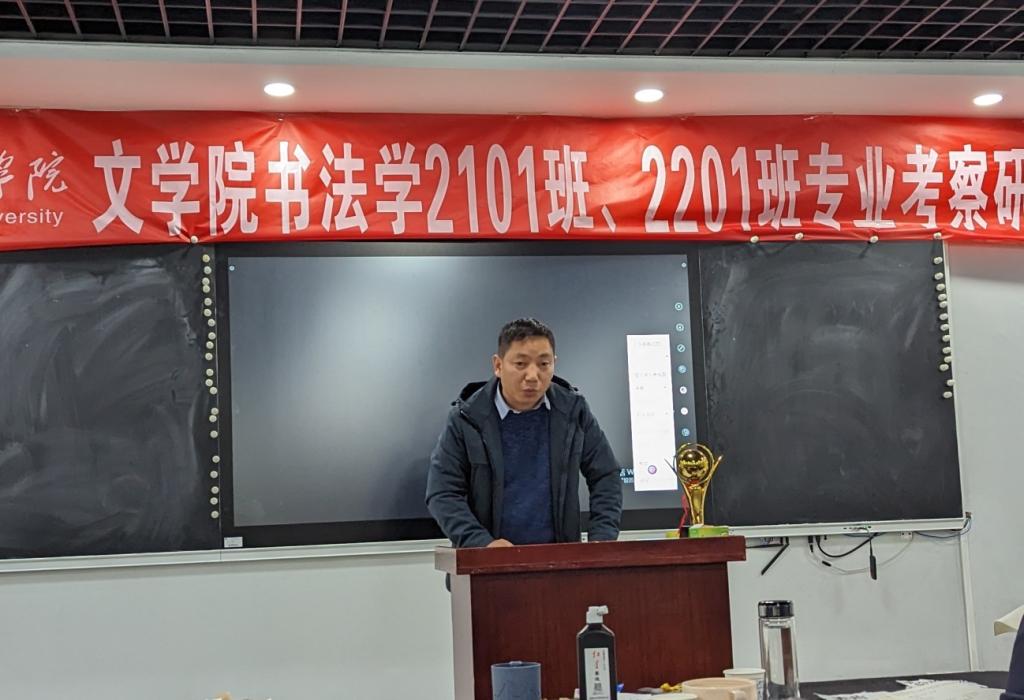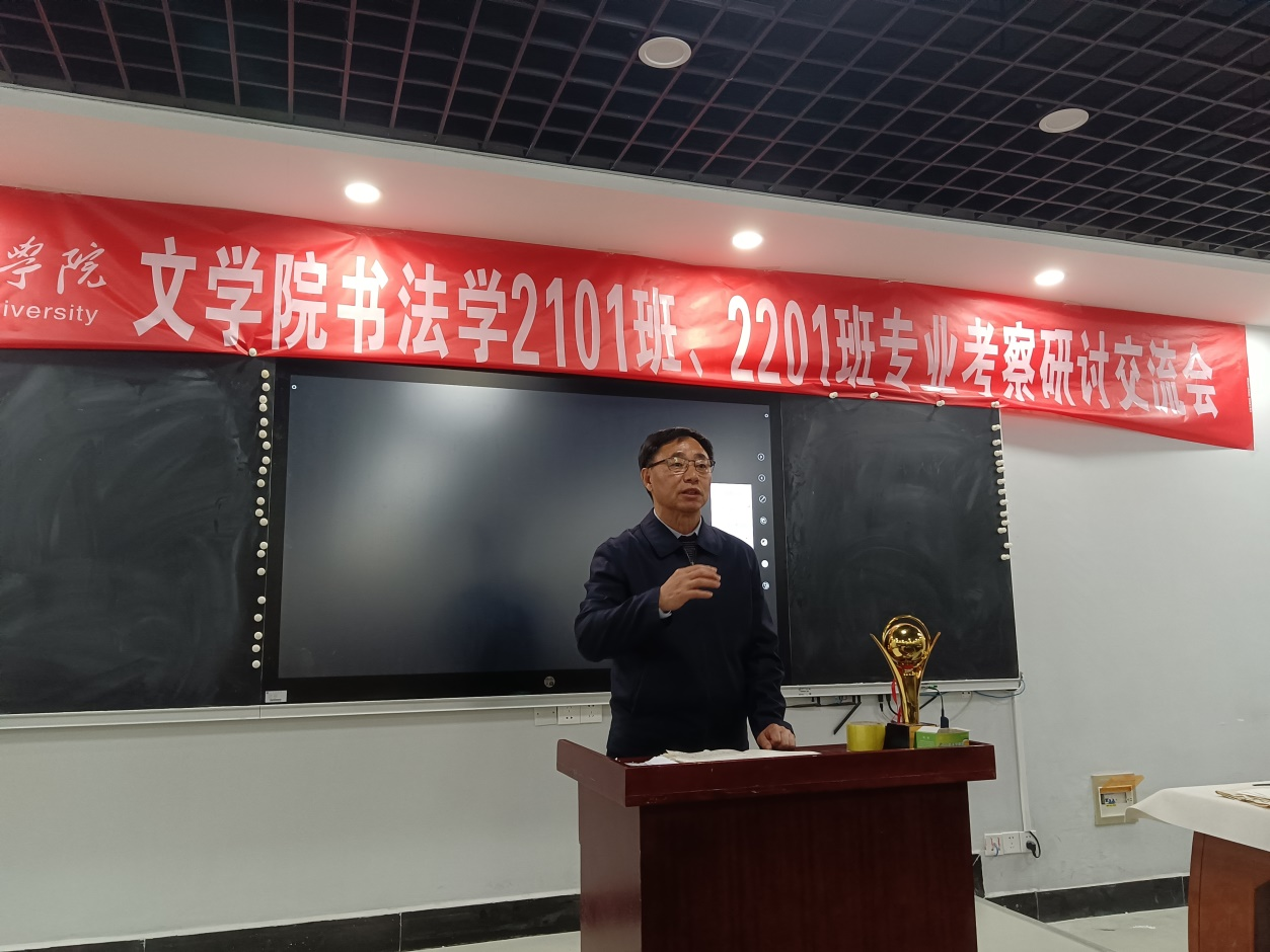 12月7日晚7点,汉江师范学院文学院书法学2021和2022级研学考察总结大会在崇文楼B505举行。书法教研室全体教师参加,十堰市书法家协会名誉主席刘学华应邀出席本次活动。大会由书法教研室主任黄振东主持。