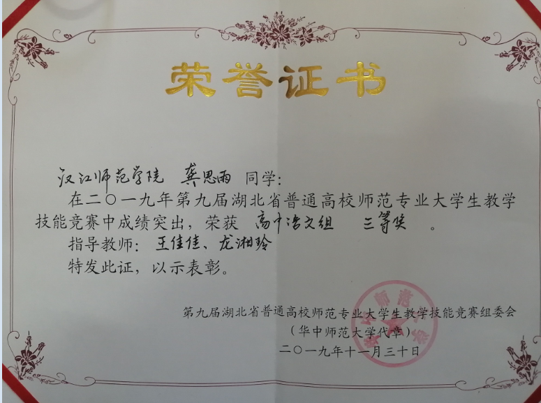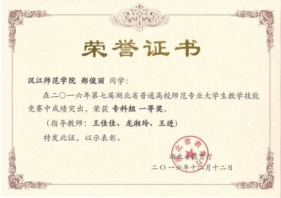 本专业2019年被确定为湖北省一流本科专业建设点。汉语言文学专业教学团队被评为省级教学团队,汉语教研室、古代文学教研室被评为省级优秀基层教学组织。2018年获批湖北省“荆楚卓越教师”协同育人计划项目。获得湖北省高等学校教学成果一等奖1项、二等奖1项、三等奖2项。